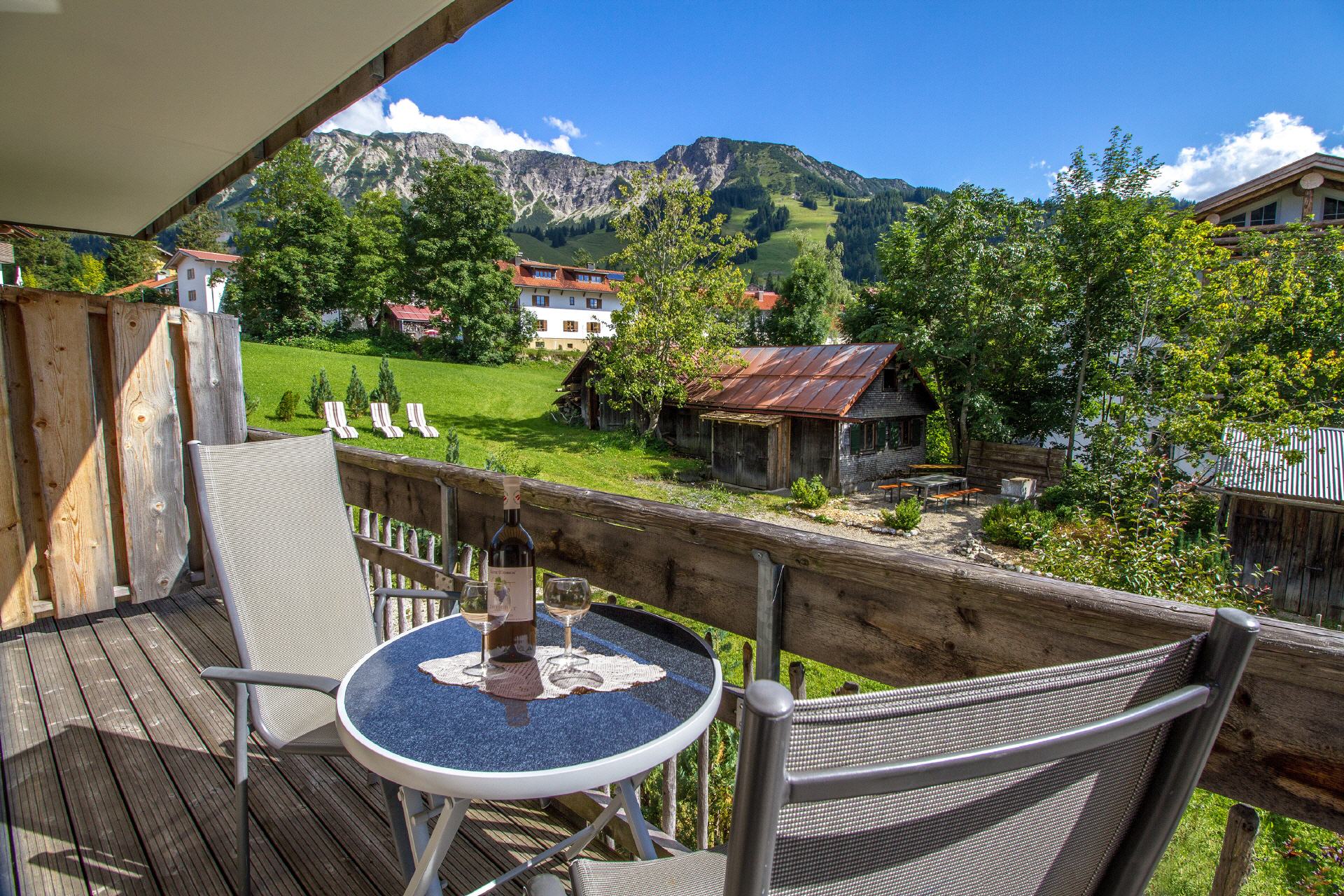 55 qm, Ostbalkon mit Bergblick und Morgensonne,