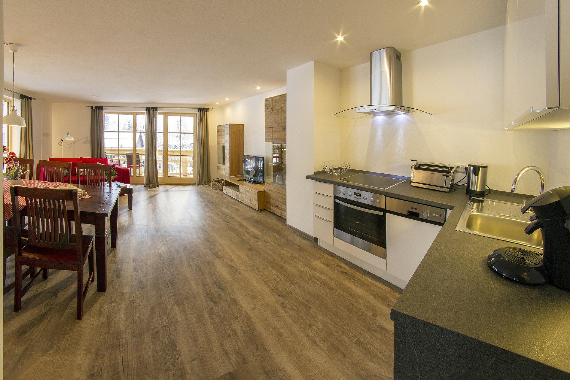 geräumige Wohnküche, Mikrowelle, Bad, extra WC, Safe