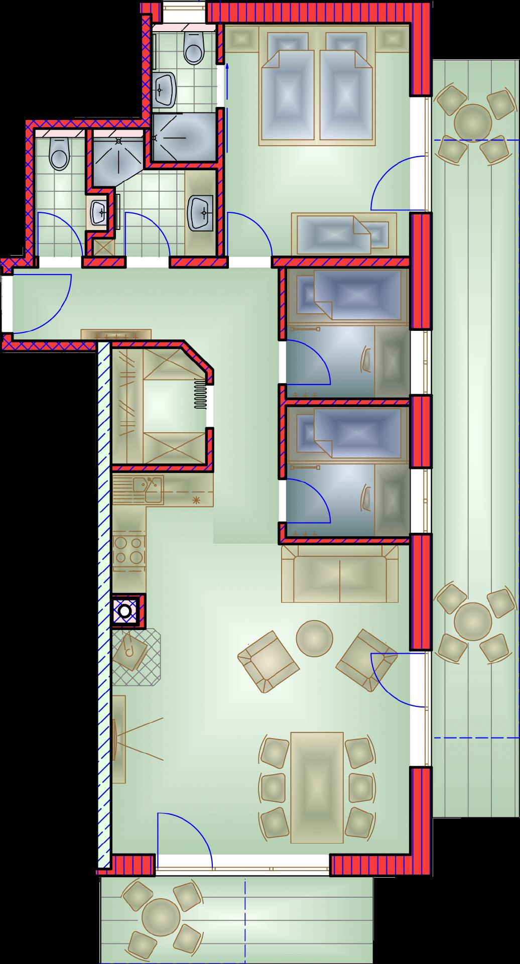4 Raum Wohnung für 4-6 Personen, 95 qm, Süd,- und Ostbalkon mit Bergblick,