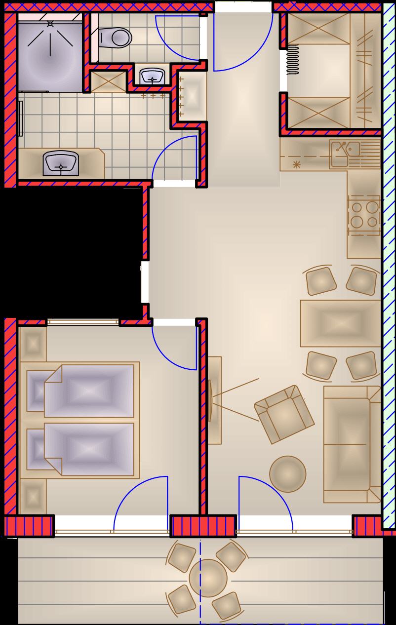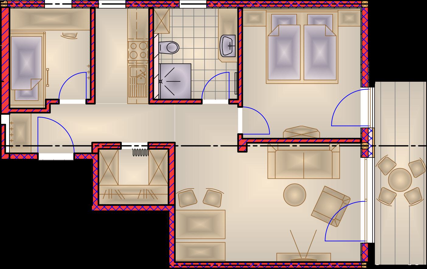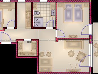 2 Raum Wohnung für 2 Personen, 55 qm,
