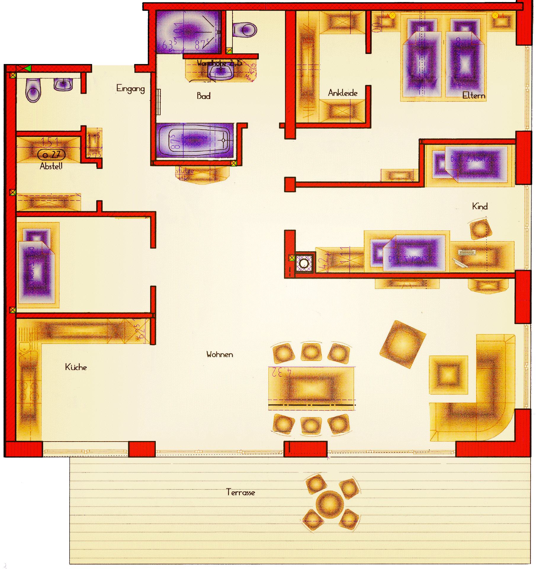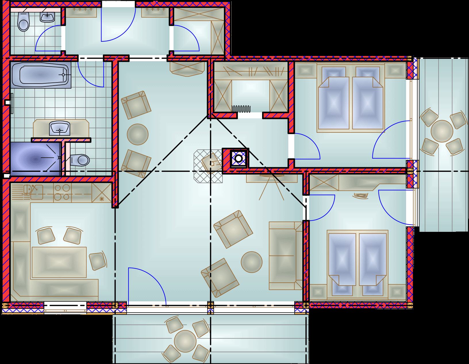 große offene Wohnküche, Bad mit Dusche/Wanne/WC, WC extra, Safe